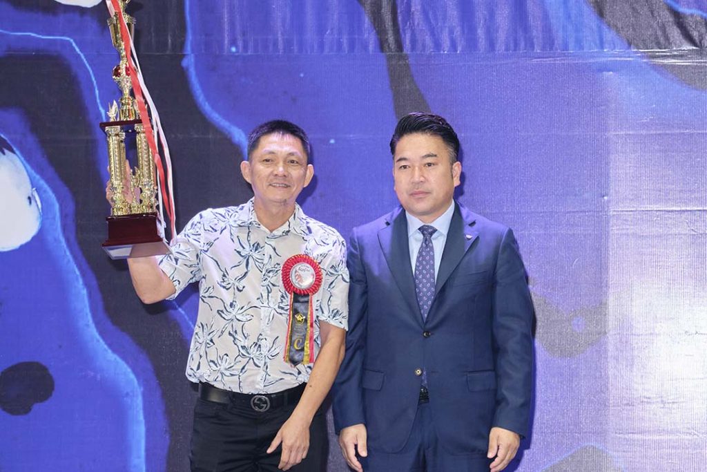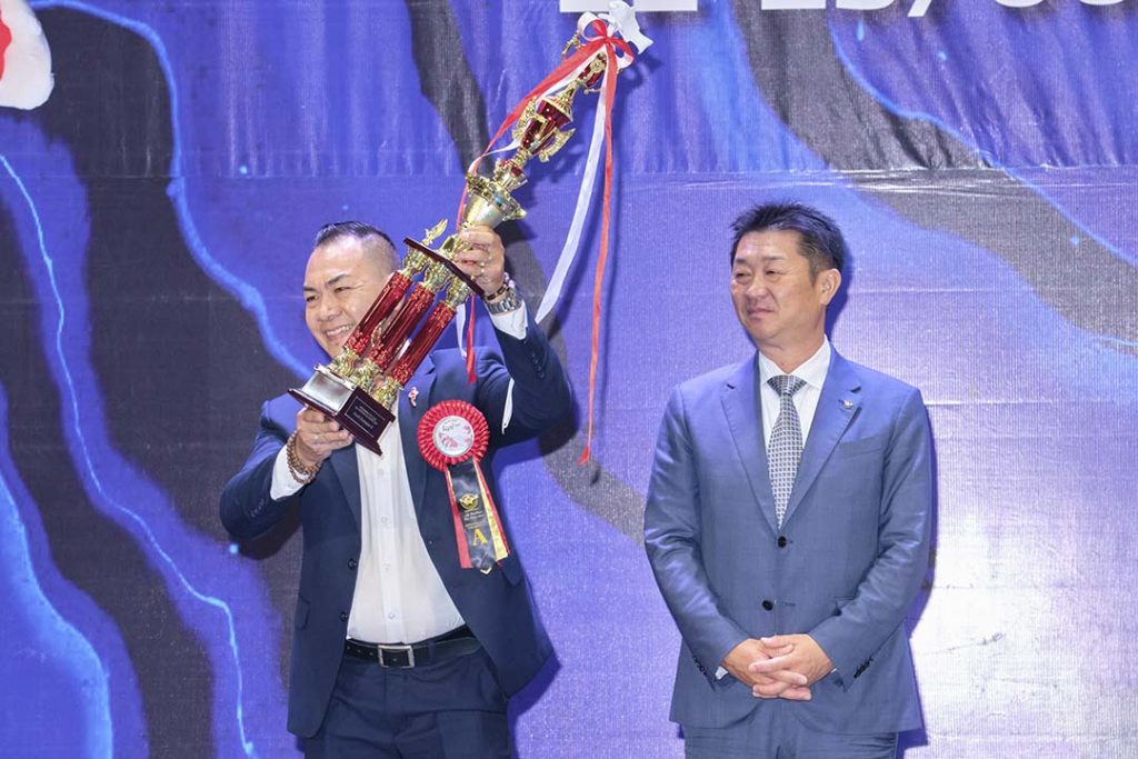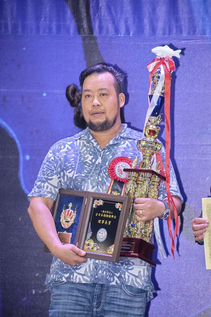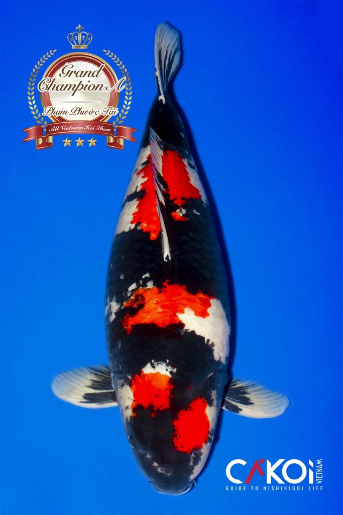 Cuối cùng, sau một ngày chấm thi căng thẳng, kết quả đã được công bố vào ngày tiếp theo 23/06. Grand Champion A năm nay chính là Showa thuộc về anh Phạm Phước Tài đến từ Huế. Đây là một loại hiếm khi đạt được Grand Champion vì Showa lớn rất khó giữ được nét đẹp. Tuy nhiên Showa này da sáng, màu sắc rất tốt về cấu trúc thân hình ấn tượng, kích thước lớn và cân đối. Anh nói: “đây là Koi được được lai tạo bởi Dainichi Koi Farm, nhập về hồi tháng 6/2022 – 3 tuổi – 72 cm, khi mang tới hội thi là 5 tuổi – 90 cm. Khi mang Showa kích thước lớn và đẹp này đi thi, tôi lo lắng rất nhiều vấn đề, chẳng hạn như nhiệt độ mùa Hè ở Huế là lúc này là 39 – 40 độ, thời gian vận chuyển từ Huế vào Tp.HCM khoảng 10 tiếng (đi xe ô tô vào sân bay Đà Nẵng, sau đó vận chuyển bằng đường hàng không tới Tp.HCM), quãng đường vận chuyển xa độ rủi ro cao…. Để nuôi Koi tốt trước tiên mọi người hãy chuẩn bị cho mình một hồ cá chuẩn, chọn nhà nhập khẩu uy tín, nguồn gốc rõ ràng, nguồn gen tốt, chất lượng cám tốt và mua thiệt là nhiều Koi (cười), khi hội tụ đủ các yếu tố trên thì sẽ nuôi Koi phát triển tốt, đẹp và khoẻ mạnh”.