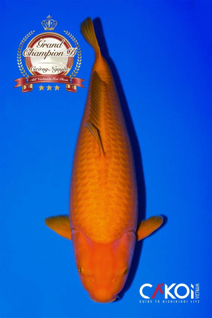Tiếp đến là Grand Champion D dòng Benigoi thuộc về anh Cường Nguyễn, anh cho biết: “Koi này mua vào lúc 3 tuổi – 78cm, đến với cuộc thi được 4 tuổi – 90cm. Nó được lai tạo bởi Sakai Fish Farm, khi mang cá đến dự thi tâm trạng cũng khá hồi hộp, theo cảm nhận cá nhân tôi thấy chú cá này phong độ và màu sắc rất tốt, khuôn mặt dễ thương, nên cũng hy vọng nó đoạt giải cao khi ra sân.”