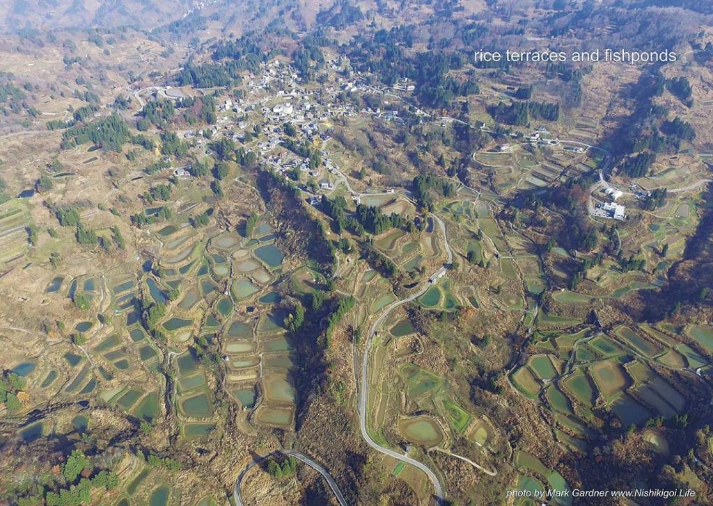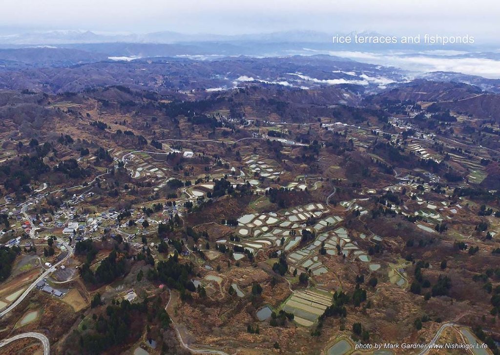 Việc bắt đầu sản xuất Nishikigoi ở khu vực này phải kể đến việc canh tác lúa, lúc đó cá con sẽ được thả vào ruộng trong khi lúa đang được nuôi trồng, do đó, những ao này trước đây đều là ruộng lúa. Nhưng dần dần, Nishikigoi phát triển nhanh chóng như một ngành công nghiệp và trở thành một phần không thể thay thế của vùng, vì vậy những ruộng lúa đã biến thành những cái ao. Tôi nghĩ khung cảnh nhiều ao cá xuất hiện trên núi như vậy rất hiếm có kể cả trên thế giới.