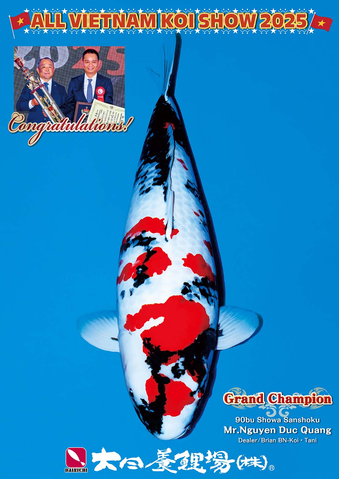 Để biết thêm thông tin về Dainichi Koi Farm, hãy nhấp vào đây! Tags: 25T07 JP PR Post navigation Previous Marudo Koi Farm / Congratulations The 55th All Japan Nishikigoi Show & The 1st World Nishikigoi Club Koi Show 2025!Next Lịch sử “Kim ngư” Trung Quốc / Koi Historia – 007 More Stories *Free News Ra mắt ứng dụng công khai của Hiệp hội Xúc tiến Nishikigoi Nhật Bản / Quảng bá tại triển lãm Koi ở Hà Lan 31/01/2026 cakoi-vn *Free Farms & Shops News Nghệ sĩ Fujimoto Hideshi tái hiện vẻ đẹp Koi / “Web triển lãm nghệ thuật vũ điệu thiên nữ của Koi” 28/01/2026 cakoi-vn *Free News Vũ khúc rực rỡ của hơn 1000 con cá chép Nishikigoi và cá vàng thuộc 70 loài. / “Lễ hội mùa hè dưới nước” đầu tiên tại tỉnh Niigata. 14/10/2025 cakoi-vn