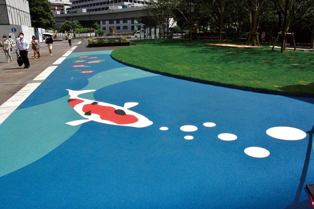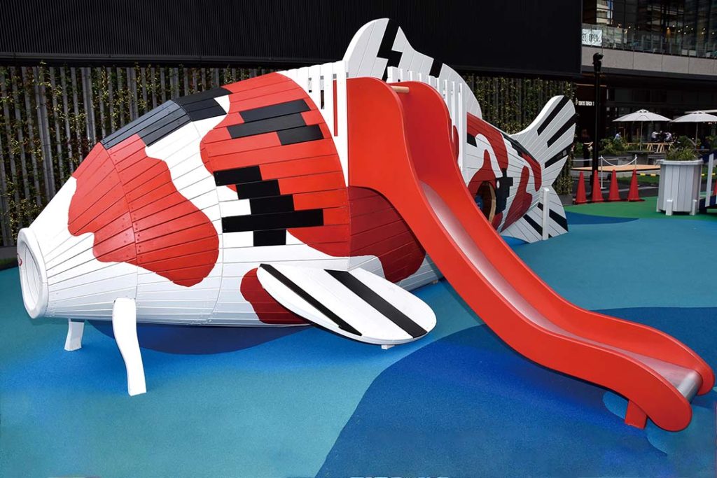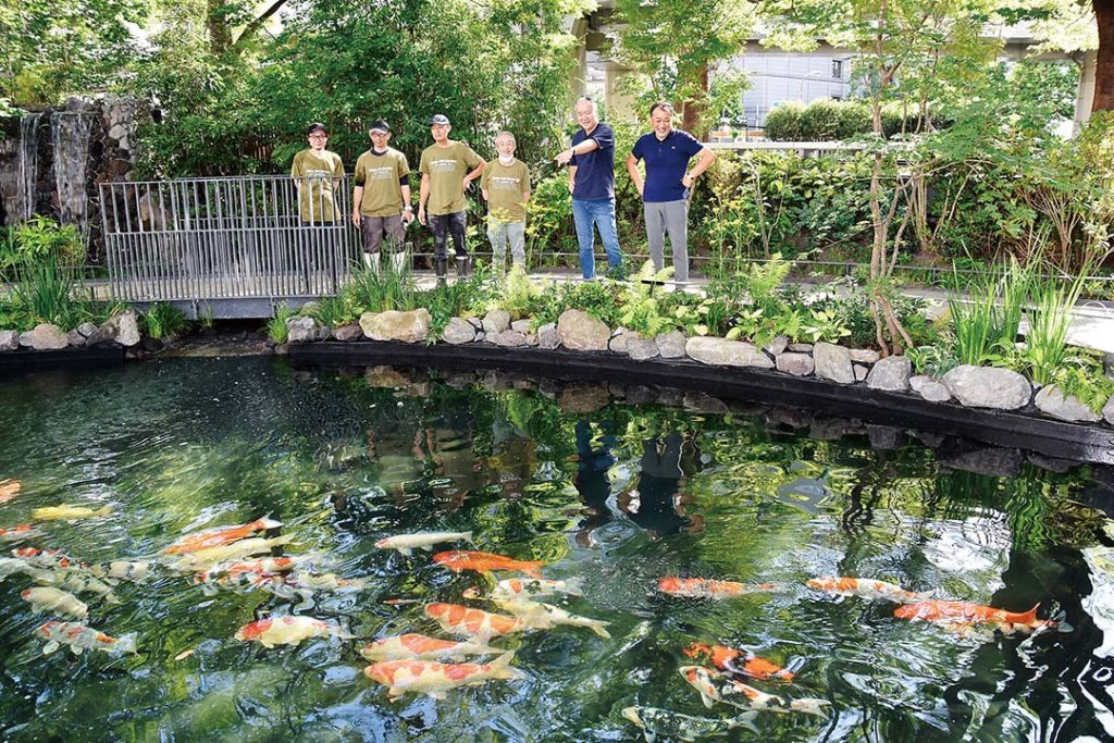 Hồ Nishikigoi có diện tích 58m2, độ sâu 85cm và sức chứa khoảng 50 khối, với Gosanke, Hikari-mono hay Kawarigoi các loại đầy màu sắc bơi lội tung tăng. Số Nishikigoi này do Hiệp hội Hợp tác Nishikigoi TP. Ojiya gửi tặng, tổng cộng gồm 50 con cái thuộc 26 giống, độ dài khoảng 60cm.