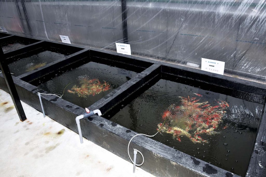 Kinjyo: Để dân địa phương cũng có thể tận hưởng thì chúng tôi bán với giá độ khoảng 500 yên cho đến những giá cao hơn, và không chỉ có Koi mà còn có cả cá vàng. Những năm gần đây, do ảnh hưởng của Corona các hội thi không được tổ chức như thường lệ và những Koi có giá thành cao hoàn toàn không bán được. Về tỉ lệ thì chủ yếu là giá bình dân, còn cao nhất thì cũng chỉ 50.000 yên. Ngoài ra nơi đây còn có địa điểm du lịch nổi tiếng có tên gọi là Korankei, có thể ngắm nhìn lá đỏ tuyệt đẹp khi vào mùa và con đường phía trước cửa hàng này là con đường duy nhất dẫn đến đó. Lúc đó có khá nhiều khách ghé xem, nên tôi cố gắng bày biện và sắp xếp để ngay cả những người chưa từng nuôi Nishikigoi cũng có thể thưởng thức.