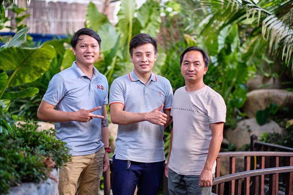Phỏng vấn với chúng tôi tại cơ sở Bình Dương (Koi Chung – Gia Thịnh) có anh Nguyễn Văn Trường và anh Nguyễn Viết Vượng, thành viên thuộc nhóm quản lý – điều hành Koi Chung. Anh Trường là người thành lập và điều hành, còn anh Vượng chịu trách nhiệm kỹ thuật và là đại diện phát ngôn tại Việt Nam. Công tác điều hành của anh Trường, ngoài điều phối hoạt động hai đầu Nhật – Việt còn có thương thảo với các Koi Farm lớn nhỏ tại Nhật Bản.