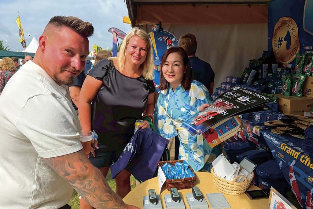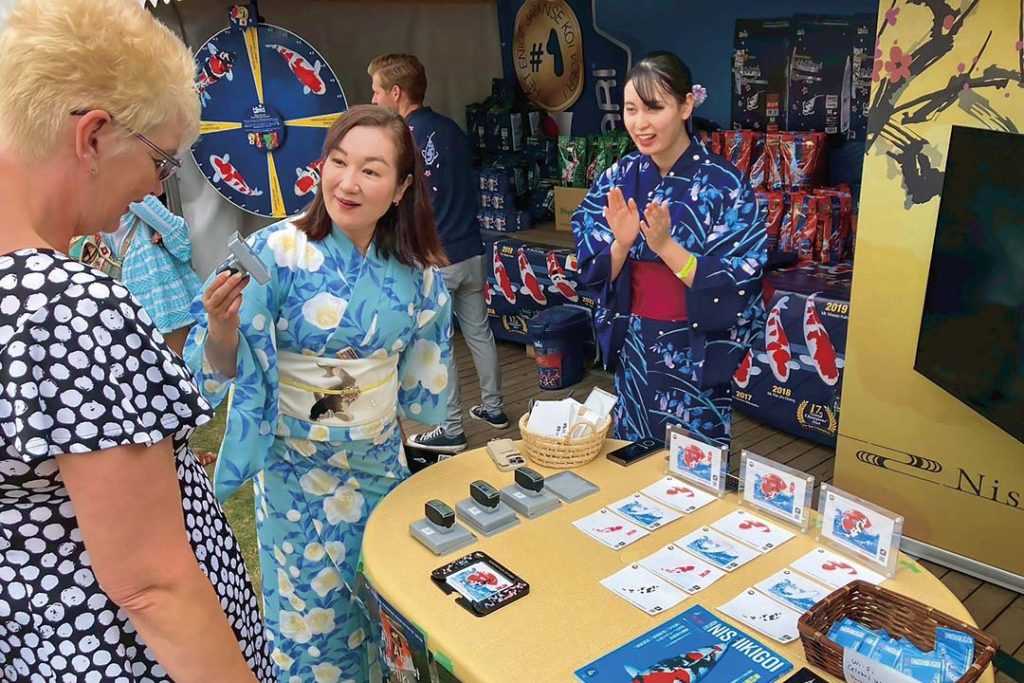 Ngoài ra, tại gian hàng triển lãm, bên cạnh việc giới thiệu ứng dụng cho khách tham quan, các hoạt động Omotenashi cũng được thực hiện thông qua việc tặng tem cá Koi và bìa nhựa hồ sơ. Với khoảng 120 lượt cài đặt ứng dụng trong hai ngày, hoạt động quảng bá này đã góp phần nâng cao danh tiếng Hiệp hội Xúc tiến Nishikigoi trong giới kinh doanh và những người yêu thích Koi cả trong và ngoài Hà Lan.