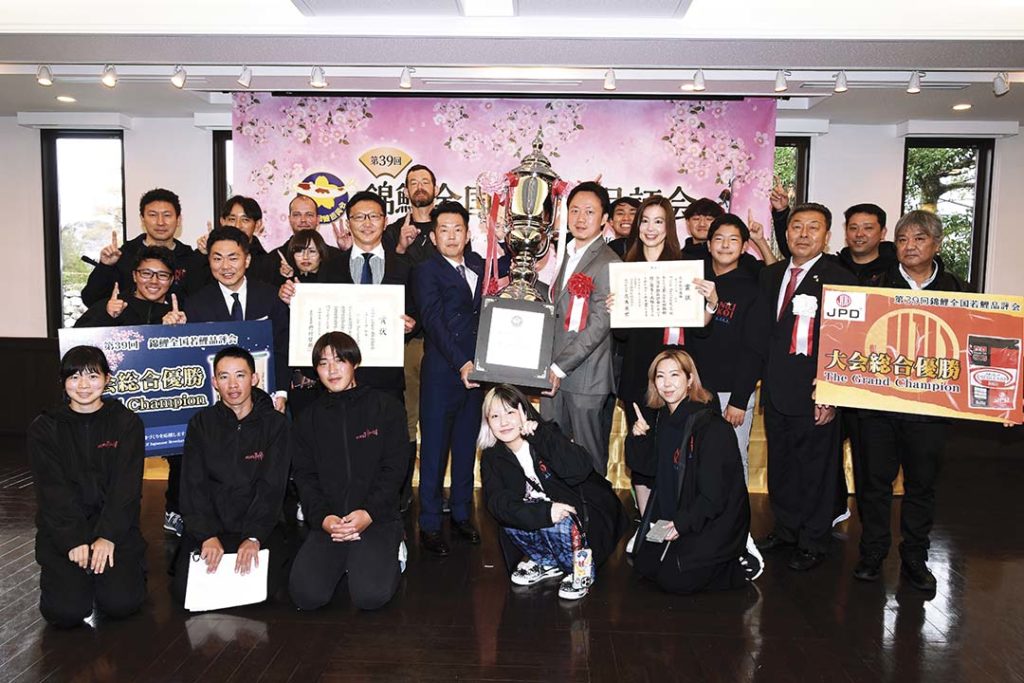 Con Koi 3 tuổi của Momotaro Okayama lai tạo, cùng với người đem đến hội thi là ông Vicha Poolvaraluk đến từ Thái Lan. Đây là con Koi đoạt giải Kokugyo 58 BU của cuộc thi lần thứ 38 vào năm ngoái, được mua qua Narita Fish Farm Co., Ltd. và KOIKICHI FISH FARM ở Thái Lan. Okayama Momotaro Koi đoạt giải lần thứ hai và lần đầu tiên là hai năm trước đó.