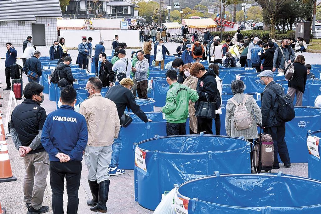 Trước khi Ban Giám khảo chấm điểm xong, đã có rất nhiều người không đợi được mà đứng chờ trước cổng hội trường chờ mở cửa tham quan. Khi cửa mở lúc 2 giờ chiều, đám đông nhanh chóng tập trung đến những bể có Koi đạt giải thưởng cao. Mặc dù chưa đến mùa hoa anh đào, nhưng riêng lâu đài Himeji đã là địa điểm thu hút rất nhiều khách tham quan quốc tế với cảnh vật đẹp quanh năm. Việc vẫn có thể tiếp tục sử dụng địa điểm này để tổ chức cuộc thi quả là một tin mừng.